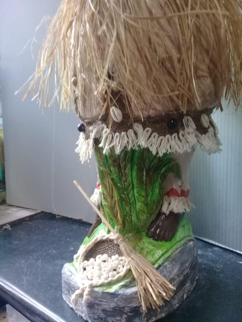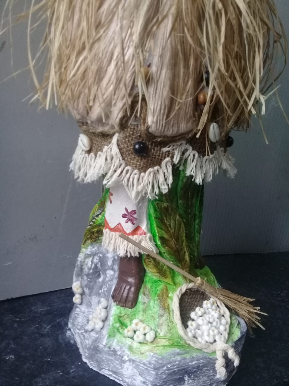 Imagem em gesso maciço revestida com palha da costa.